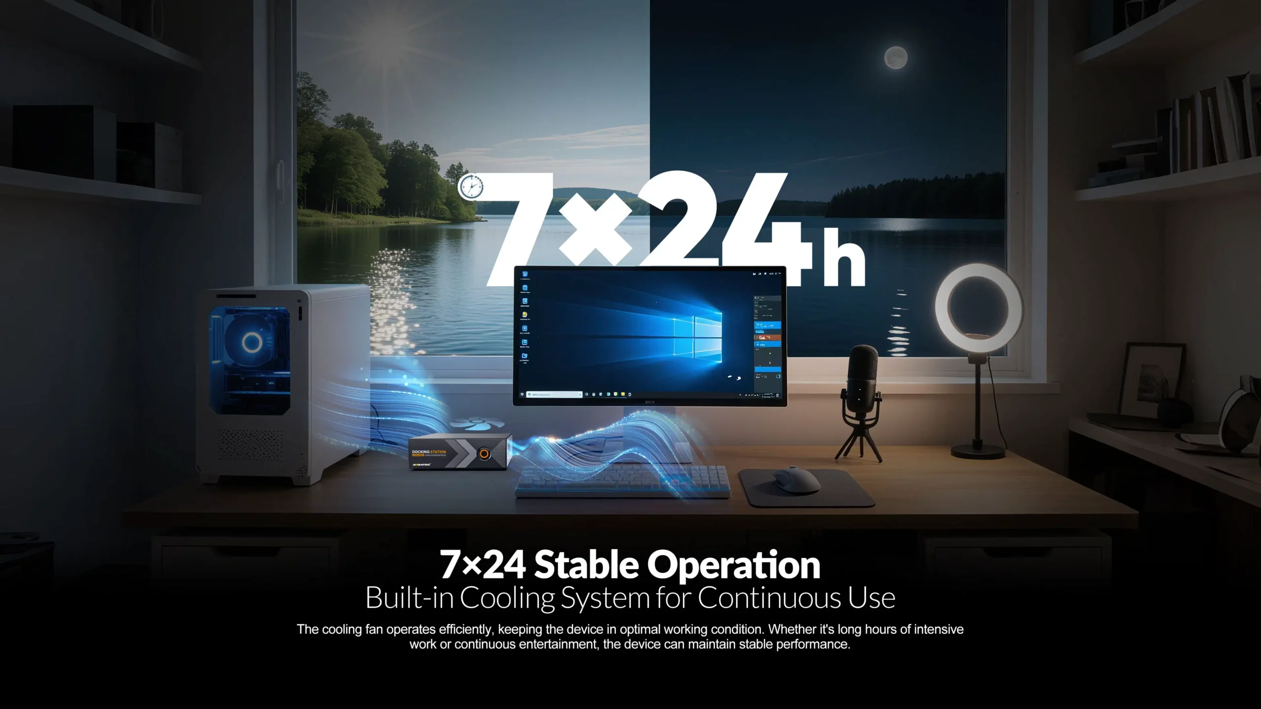 Active cooling system for stable 24-hour continuous operation.