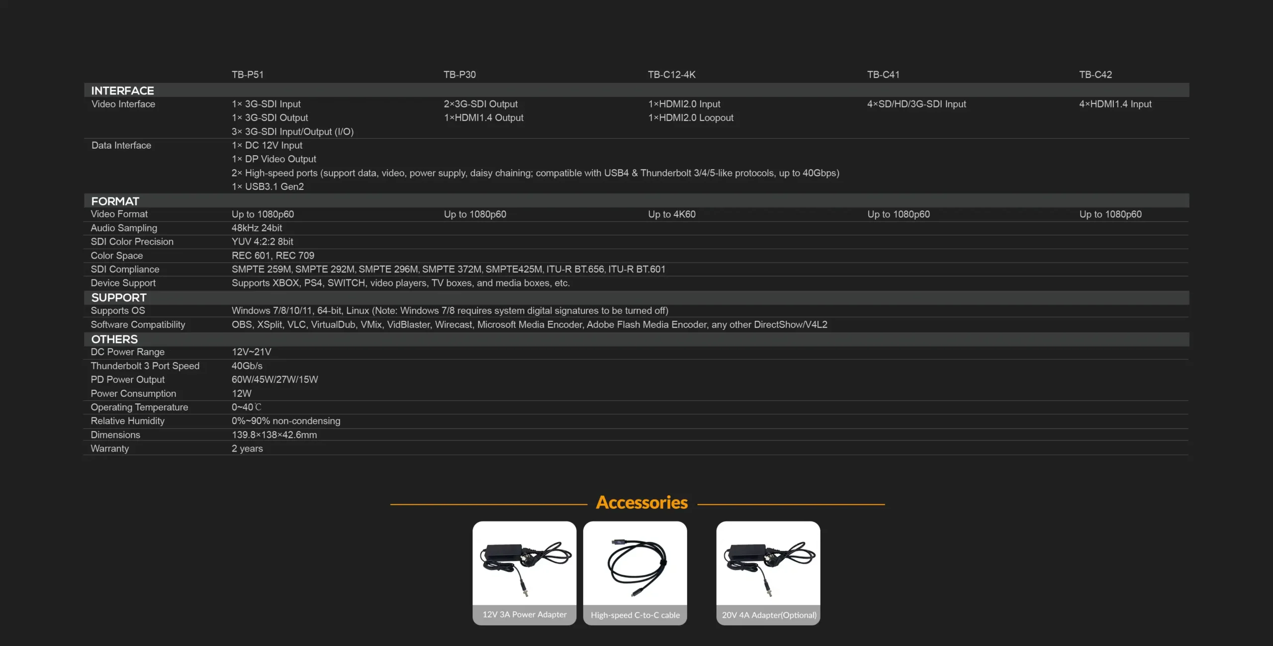 The AVMATRIX TB-Box Thunderbolt Box Series is designed to transform your Thunderbolt workstation into a powerful hub for advanced video and peripheral connectivity. Equipped with dual ultra-speed Thunderbolt 3 ports running at up to 40 Gbps, this docking solution provides seamless high-bandwidth support for demanding workflows such as multi-camera capture, live streaming, and broadcasting.